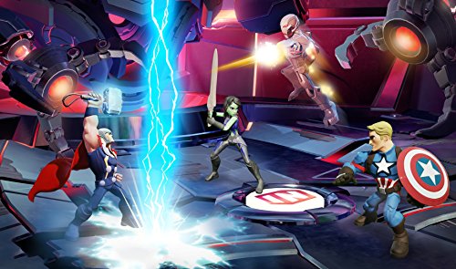 DescriptionEvil forces scheme for world conquest as they pit Marvel's greatest Super Heroes against each other! It's an all out brawl in Marvel Battlegrounds! • Engage in 4-player combat and battle in 12 levels across 8 epic new arenas! • Customize your game with up to 6 Round Marvel Power Discs per match • Select Super Heroes and Villains from your ENTIRE collection of Marvel characters in Disney Infinity • Smash through floors, walls and tear down the environment as you battle to defeat your opponents • 28 characters to collect and more to come! Use Captain America's shield to attack from a distance and increase the power of close quarters combat. Features