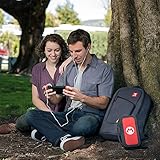 The officially licensed Nintendo Switch Elite Player Backpack not only holds and protects the entire Nintendo Switch console system, but has spacious labelled pockets for the dock, additional controllers, cables, Switch game cards, and additional personal items for the gamer on-the-go. Don't leave anything behind with this sturdy, durable backpack and protect your Switch console and accessories, including full sized headphones and the Switch Pro Controller.