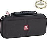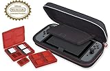 DescriptionThe Nintendo Switch Game Traveler Deluxe Travel Case holds and protects the Nintendo Switch. It has a padded divider to protect the screen and a zippered mesh pocket to hold extra game cards. This Case also includes 2 red transparent game card cases, which hold 4 Nintendo Switch game cards. In addition this case includes 2 red transparent Micro SD card cases which will fit in any section of the game card cases. The Deluxe Travel Case has a durable 1680D hard shell for maximum protection and a comfortable carrying handle for easy portability. Features